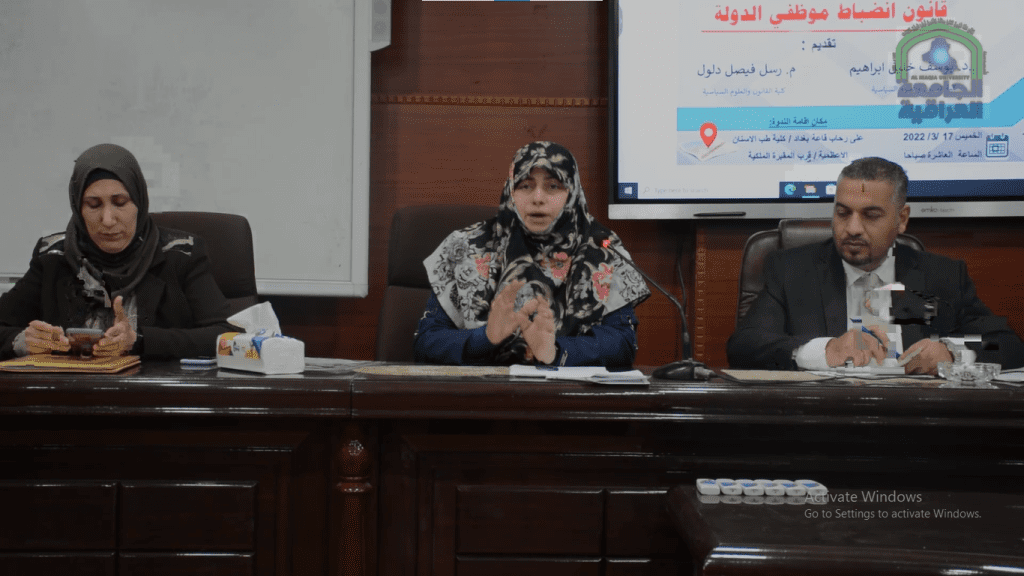 ((State Employees Discipline Law)) :a New Training Course by MAE | Mar 24, 2022 | Centers, Computer and Internet Center, Cultural, University News Computer and Internet Center at Al-Iraqia University organized a training course on ((State Employees Discipline…